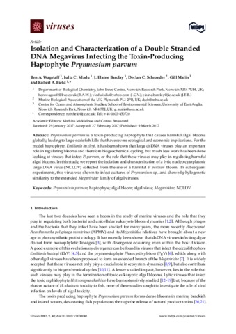 Wagstaff, B., Vladu, I., Barclay, J., Schroeder, D. C., Malin, G. and Field, R. (2017) Isolation and characterization of a double stranded DNA mgavirus infecting the toxin-producing haptophyte Prymnesium parvum. Viruses, 9 (3). 40. ISSN 1999-4915 doi: 10.3390/v9030040