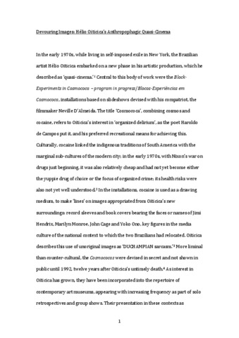 Butler, A. (2019) Devouring images: Hélio Oiticica’s anthropophagic quasi-cinema. Screen, 60 (1). pp. 128-136. ISSN 1460-2474 doi: 10.1093/screen/hjy060