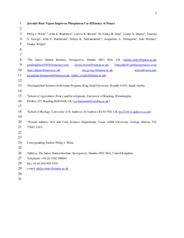 Juvenile root vigour improves phosphorus use efficiency of potato.