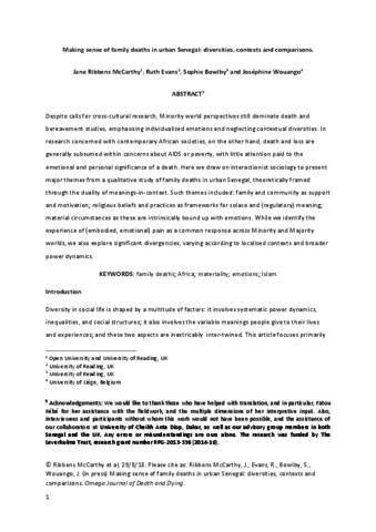 Making sense of family deaths in urban Senegal: diversities, contexts and comparisons.