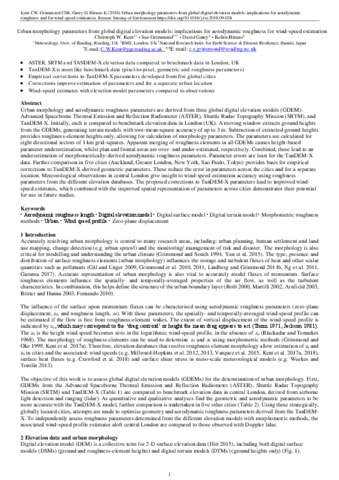 Urban morphology parameters from global digital elevation models: implications for aerodynamic roughness for wind-speed estimation.