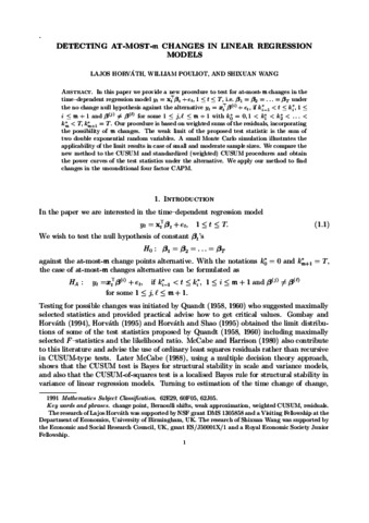Horváth, L., Pouliot, W. and Wang, S. orcid id iconORCID: https://orcid.org/0000-0003-2113-5521 (2017) Detecting at-most-m changes in linear regression models. Journal of Time Series Analysis, 38 (4). pp. 552-590. ISSN 1467-9892 doi: 10.1111/jtsa.12228