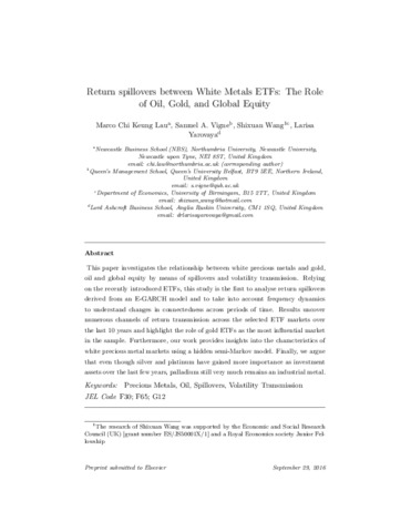 Return spillovers between white precious metal ETFs: the role of oil, gold, and global equity.