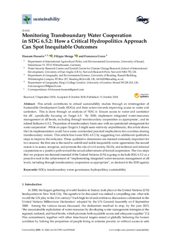 Monitoring transboundary water cooperation in SDG 6.5.2: how a critical hydropolitics approach can spot inequitable outcomes