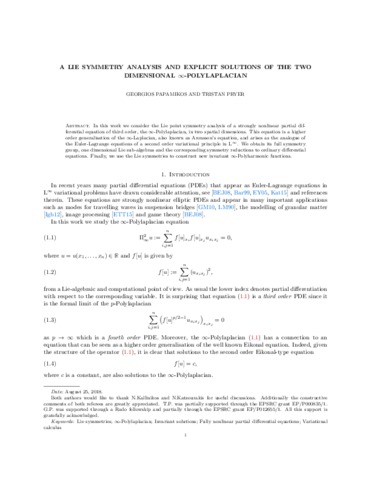 Papamikos, G. and Pryer, T. (2019) A Lie symmetry analysis and explicit solutions of the two-dimensional ∞-Polylaplacian. Studies in Applied Mathematics, 142 (1). pp. 48-64. ISSN 0022-2526 doi: 10.1111/sapm.12232