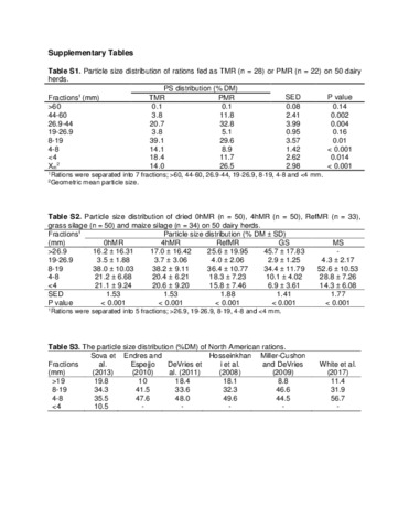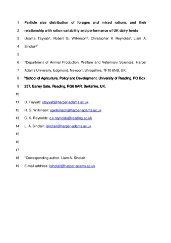 Uncontrolled Keywords | Dairy cows, ration variability, diet selection, particle size distribution |