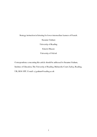 Second language listening has historically proved to be a difficult skill. Strategy instruction studies have sought to bring about improvements in subjects’ listening but with mixed results. This lack of success might be due to the nature of listening strategy theory and its influence on conceptualizations of listening strategy instruction. The current study, based on an initial descriptive investigation of a specific population of learners, measured the effects of strategy instruction on both the listening performance and self-efficacy of 68 lower-intermediate learners of French in England, against a comparison group. Moreover, the effects of high- and low-scaffolded interventions were compared. Results suggest that the program improved listening proficiency and learners’ confidence about listening. Implications for pedagogy and strategy theory are discussed.