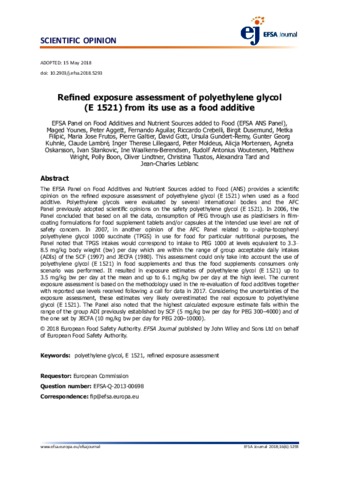 Refined exposure assessment of polyethylene glycol (E 1521) from its use as a food additive.
