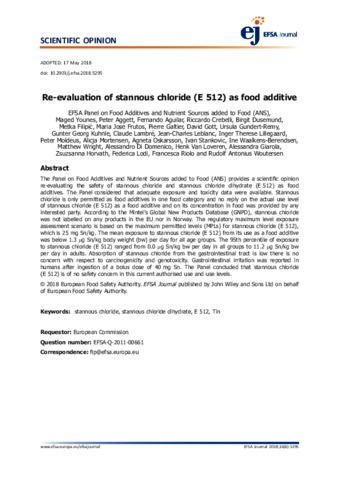 Re‐evaluation of stannous chloride (E 512) as food additive