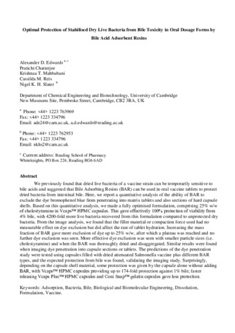 | Uncontrolled Keywords | Adsorption, Bacteria, Bile, Biological and Biomolecular Engineering, Dissolution, Formulation, Vaccine |