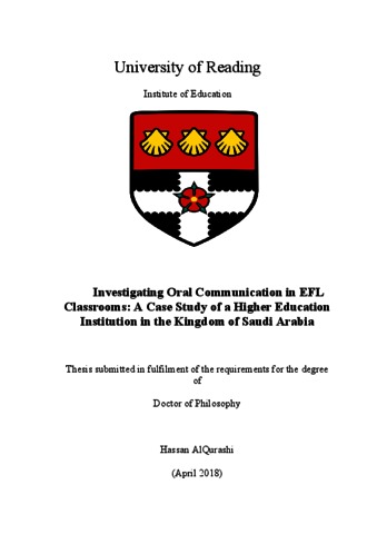 AlQurashi, H. (2018) Investigating oral communication in EFL classrooms: a case study of a Higher Education Institution in the Kingdom of Saudi Arabia. PhD thesis, University of Reading. doi: 10.48683/1926.00079993