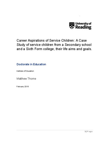 Thorne, M. (2018) Career aspirations of service children: a case study of service children from a Secondary school and a Sixth Form college, their life aims and goals. EdD thesis, University of Reading.