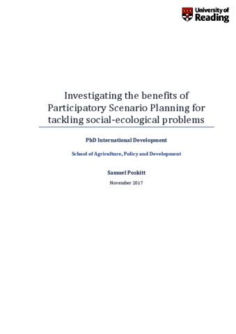 Poskitt, S. (2018) Investigating the benefits of Participatory Scenario Planning for tackling social-ecological problems. PhD thesis, University of Reading.