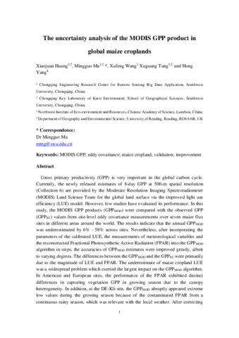 The uncertainty analysis of the MODIS GPP product in global maize croplands.