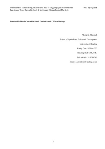 Murdoch, A. (2018) Sustainable weed control in small grain cereals (wheat/barley). In: Korres, N. E., Burgos, N. R. and Duke, S. O. (eds.) Weed Control: Sustainability, Hazards and Risks in Cropping Systems Worldwide. CRC Press, pp. 215-237. ISBN 9781498787468