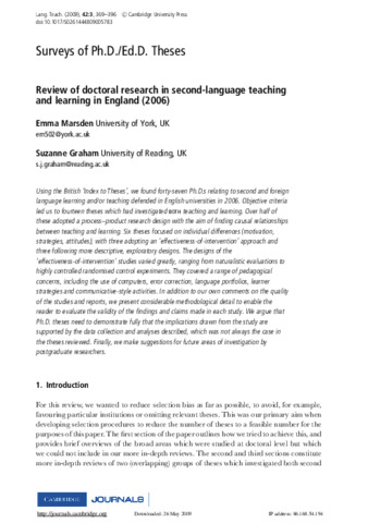 | Uncontrolled Keywords | Second language; teaching; learning; PhD theses; systematic review |