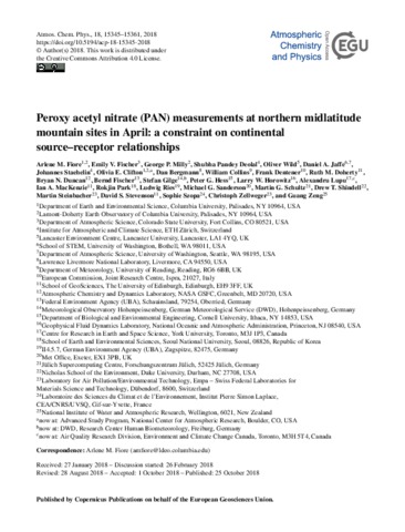Peroxy acetyl nitrate (PAN) measurements at northern mid-latitude mountain sites in April: a constraint on continental source-receptor relationships.