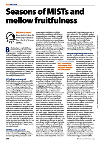 Mike Lockwood looks to the future, by reflecting on lessons from the first 50 years of MIST.