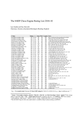 The SSDF chess engine rating list, 2018-10.