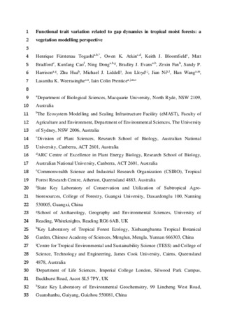 Functional trait variation related to gap dynamics in tropical moist forests: a vegetation modelling perspective.