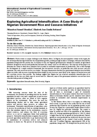 Exploring agricultural intensification: a case study of