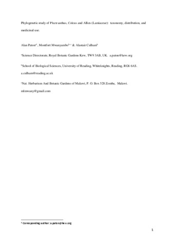 Phylogenetic study of Plectranthus, Coleus and allies (Lamiaceae): taxonomy, distribution and medicinal use.