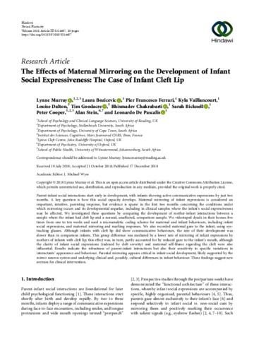 The effects of maternal mirroring on the development of infant social expressiveness: the case of infant cleft lip.