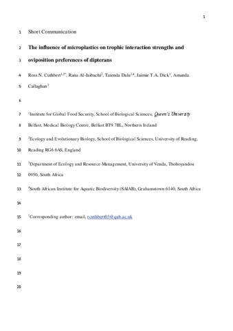 The influence of microplastics on trophic interaction strengths and oviposition preferences of dipterans.