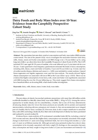 Dairy foods and body mass index over 10-year: evidence from the Caerphilly Prospective Cohort Study