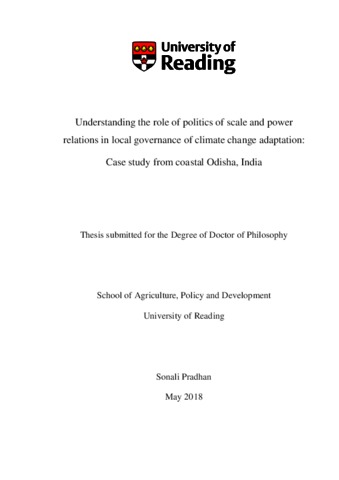Pradhan, S. (2018) Understanding the role of politics of scale and power relations in local governance of climate change adaptation: case study from coastal Odisha, India. PhD thesis, University of Reading.