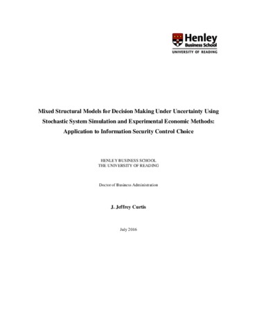 Curtis, J. J. (2016) Mixed structural models for decision making under uncertainty using stochastic system simulation and experimental economic methods: application to information security control choice. DBA thesis, Henley Business School, University of Reading.