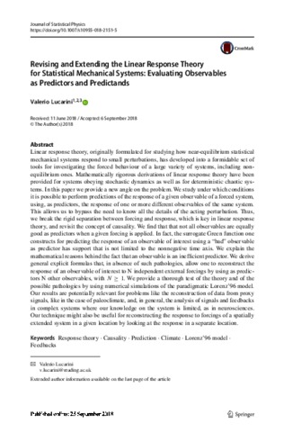 Revising and extending the linear response theory for statistical mechanical systems: evaluating observables as predictors and predictands.