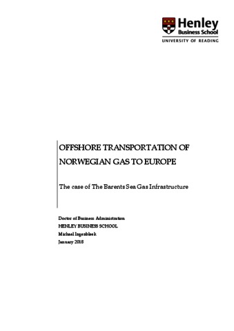 Ingenbleek, M. (2018) Offshore transportation of Norwegian gas to Europe: the case of the Barents Sea gas infrastructure. DBA thesis, Henley Business School, University of Reading.
