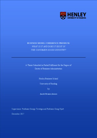 Bruun-Jensen, J. (2017) Business model coherence premium: what is it and does it exist in the consumer goods industry? DBA thesis, Henley Business School, University of Reading.