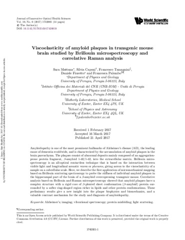 Viscoelasticity of amyloid plaques in transgenic mouse brain studied by Brillouin microspectroscopy and correlative Raman analysis.