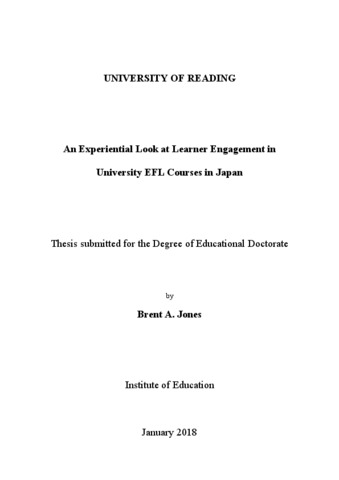 Jones, B. A. (2018) An experiential look at learner engagement in University EFL courses in Japan. EdD thesis, University of Reading.