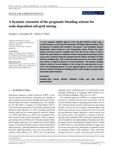 Efstathiou, G. A. and Plant, R. S. orcid id iconORCID: https://orcid.org/0000-0001-8808-0022 (2019) A dynamic extension of the pragmatic blending scheme for scale-dependent sub-grid mixing. Quarterly Journal of the Royal Meteorological Society, 145 (719). pp. 884-892. ISSN 1477-870X doi: 10.1002/qj.3445