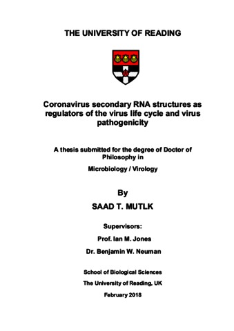 Mutlk, S. T. (2018) Coronavirus secondary RNA structures as regulators of the virus life cycle and virus pathogenicity. PhD thesis, University of Reading.