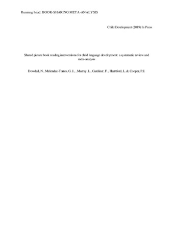 Dowdall, N., Melendez-Torres, G. J., Murray, L., Gardner, F., Hartford, L. and Cooper, P. J. (2020) Shared picture book reading interventions for child language development: a systematic review and meta-analysis. Child Development, 91 (2). e383-e399. ISSN 0009-3920 doi: 10.1111/cdev.13225