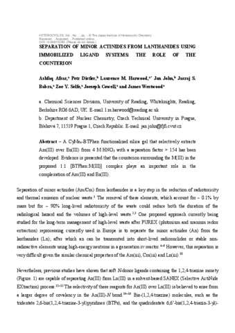 Separation of minor actinides from lanthanides using immobilized ligand systems: the role of the counterion.
