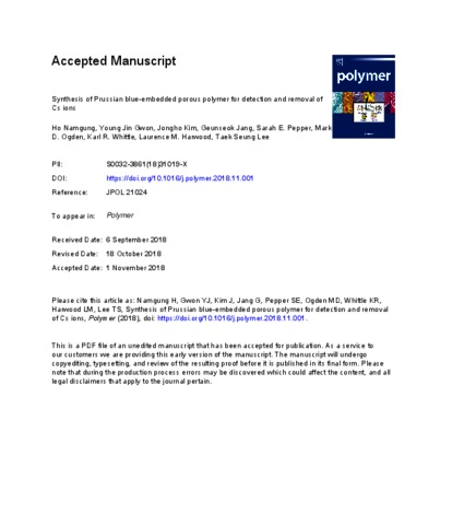 Synthesis of Prussian blue-embedded porous polymer for detection and removal of Cs ions.