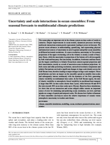 Uncertainty and scale interactions in ocean ensembles: from seasonal forecasts to multidecadal climate predictions.