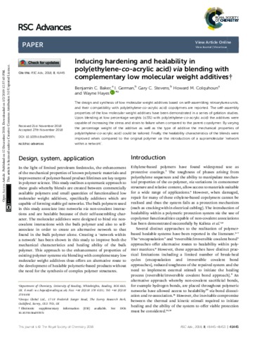 Inducing hardening and healability in poly(ethylene-co-acrylic acid) via blending with complementary low molecular weight additives.