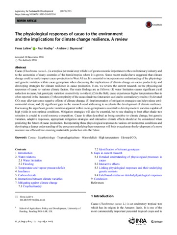 The physiological responses of cacao to the environment and the implications for climate change resilience. A review.