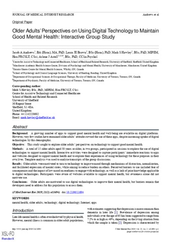 Older adults’ perspectives on using digital technology to maintain good mental health: interactive group study.