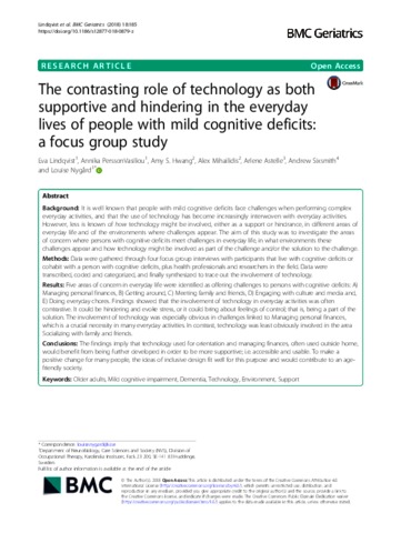 The contrasting role of technology as both supportive and hindering in the everyday lives of people with mild cognitive deficits: a focus group study