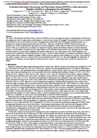 Ao, X., Grimmond, C. S. B. orcid id iconORCID: https://orcid.org/0000-0002-3166-9415, Ward, H. C., Gabey, A. M., Tan, J., Yang, X.-Q., Liu, D., Zhi, X., Liu, H. and Zhang, N. (2018) Evaluation of the Surface Urban Energy and Water balance Scheme (SUEWS) at a dense urban site in Shanghai: sensitivity to anthropogenic heat and irrigation. Journal of Hydrometeorology, 19. pp. 1983-2005. ISSN 1525-7541 doi: 10.1175/JHM-D-18-0057.1