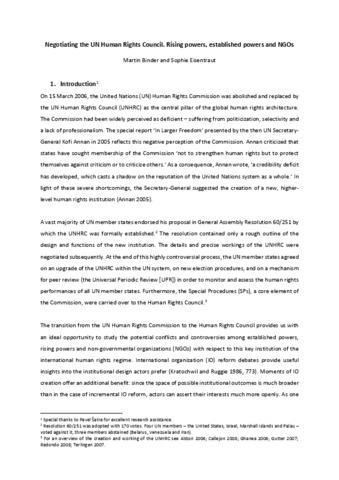 Negotiating the UN Human Rights Council. Rising powers, established powers and NGOs.