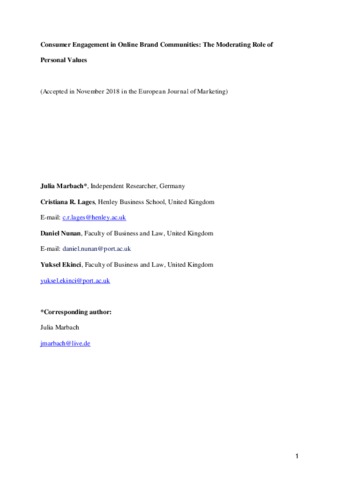 Marbach, J., Lages, C., Nunan, D. and Ekinci, Y. (2019) Consumer engagement in online brand communities: the moderating role of personal values. European Journal of Marketing, 53 (9). pp. 1671-1700. ISSN 0309-0566 doi: 10.1108/ejm-10-2017-0721