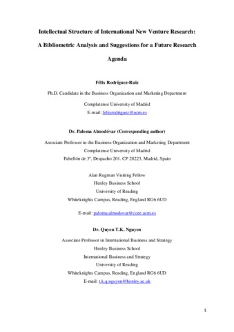 Intellectual structure of international new venture research: a bibliometric analysis and suggestions for a future research agenda.